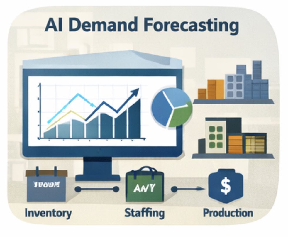 A company with seasonal sales swings can use AI forecasting to plan inventory purchases and staffing more accurately instead of reacting after the demand spike has already happened.