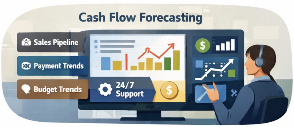 A growing business with uneven customer payment cycles can use AI to improve short term cash flow forecasting and identify potential gaps before they become urgent.
